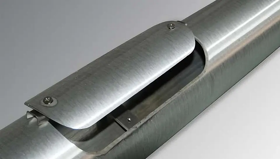 Eachpolehasajunctionboxforelectricdoorinstallation. Morelux adopts advanced cutting equipment to cut the hole door, the door becomes a part of the rod body, ensuring the waterproof of electric door. we use allen key to protect the door, mean time we welding workpiece “L” for the grounding wire.